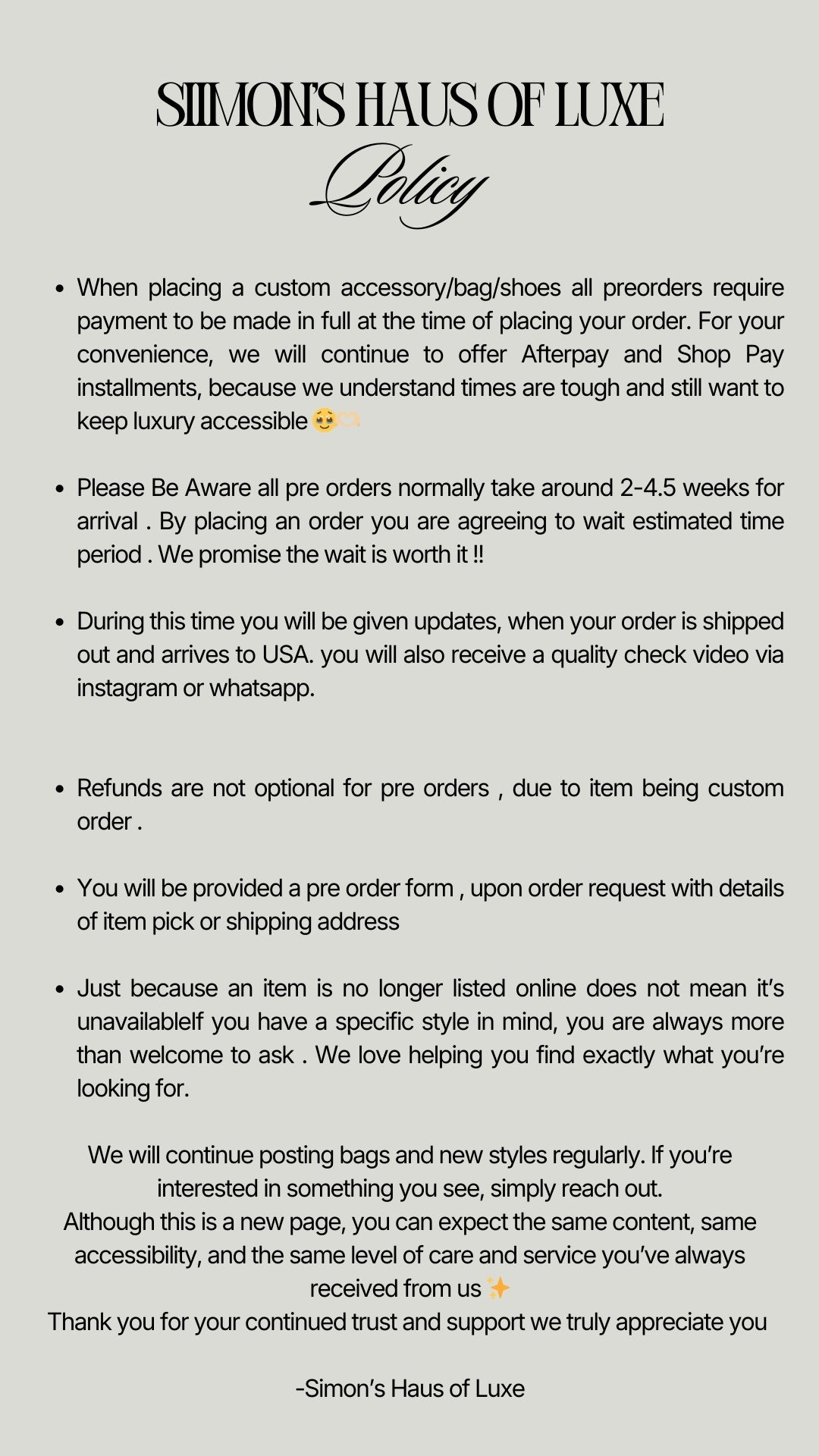 PLEASE READ PRE ORDER POLICY BEFORE ORDERING